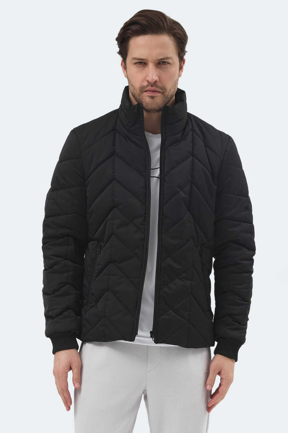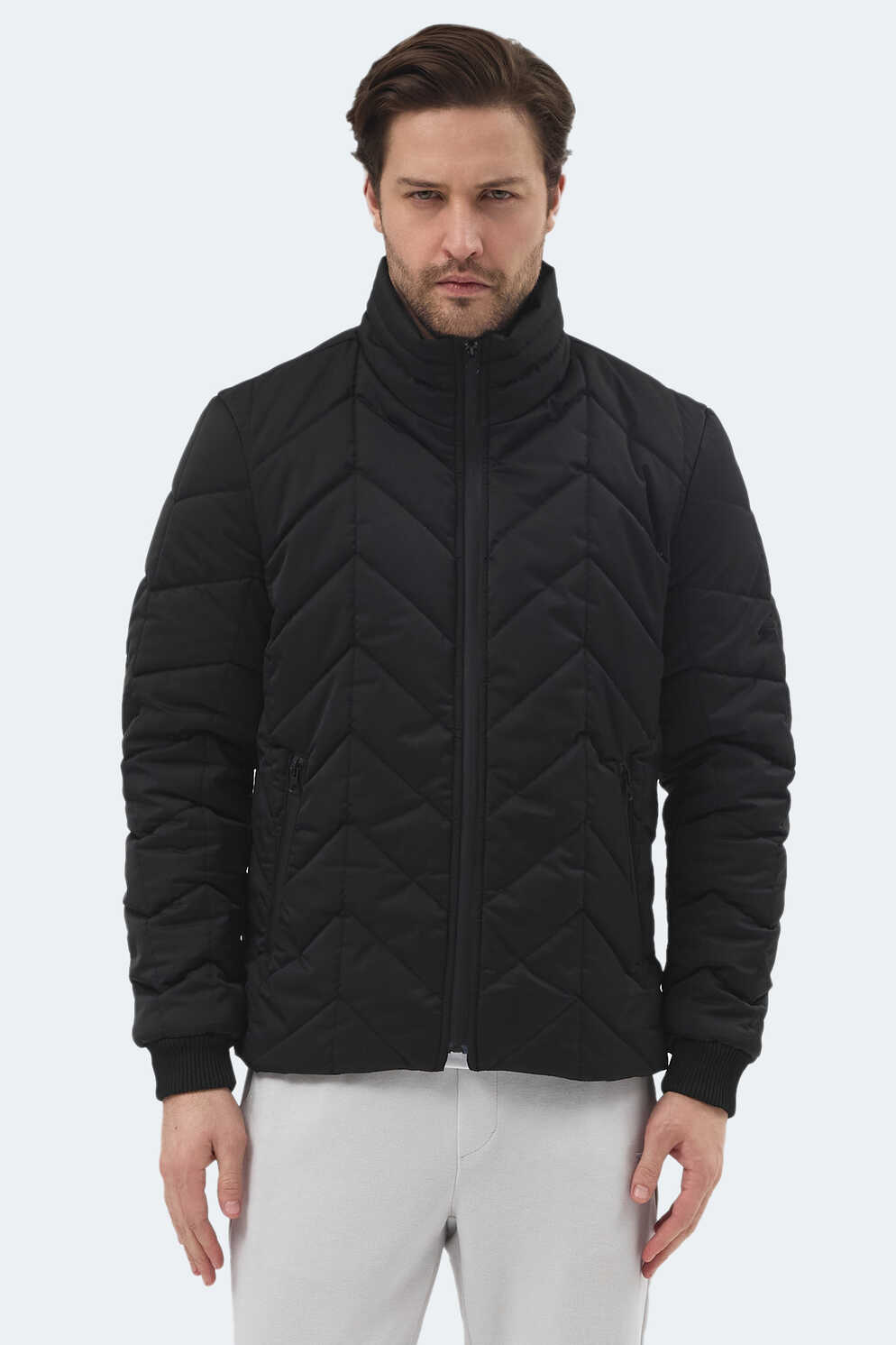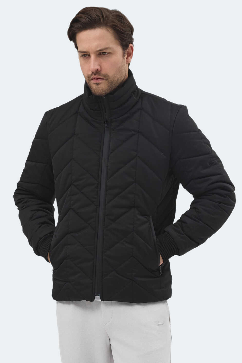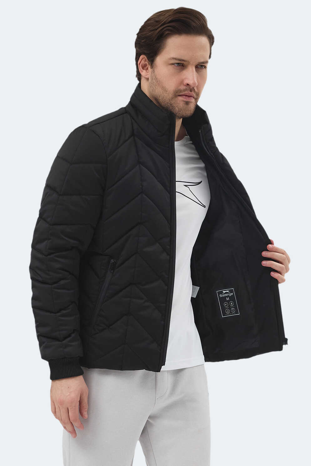 Slazenger BEAST Erkek Dik Yaka Fermuarlı Siyah Mont & Kaban