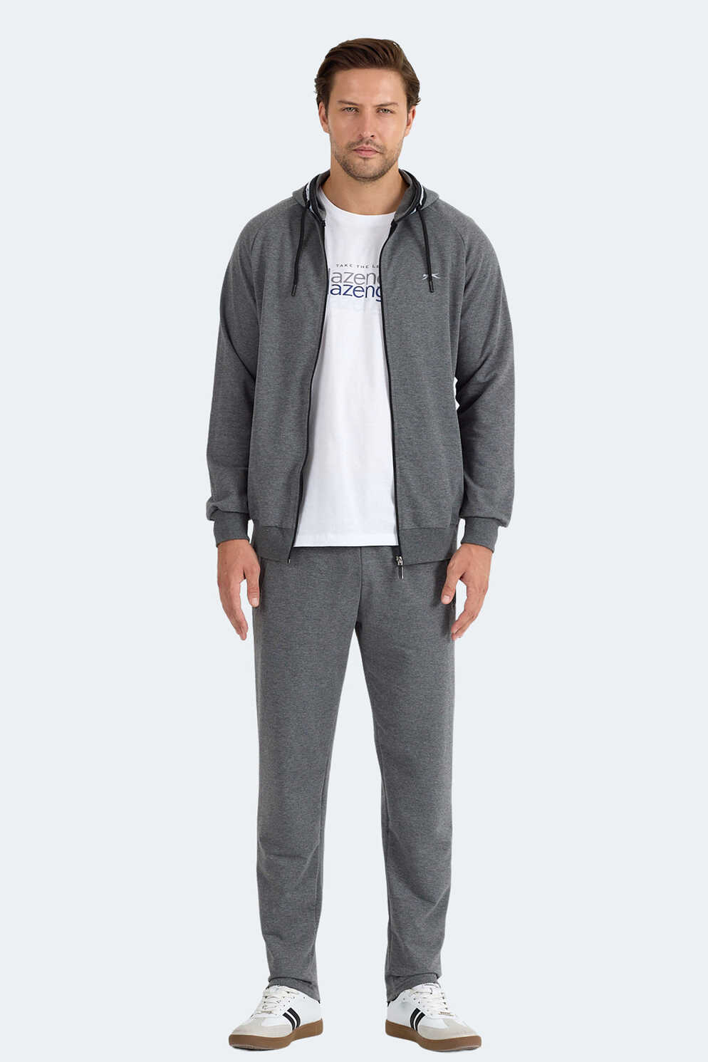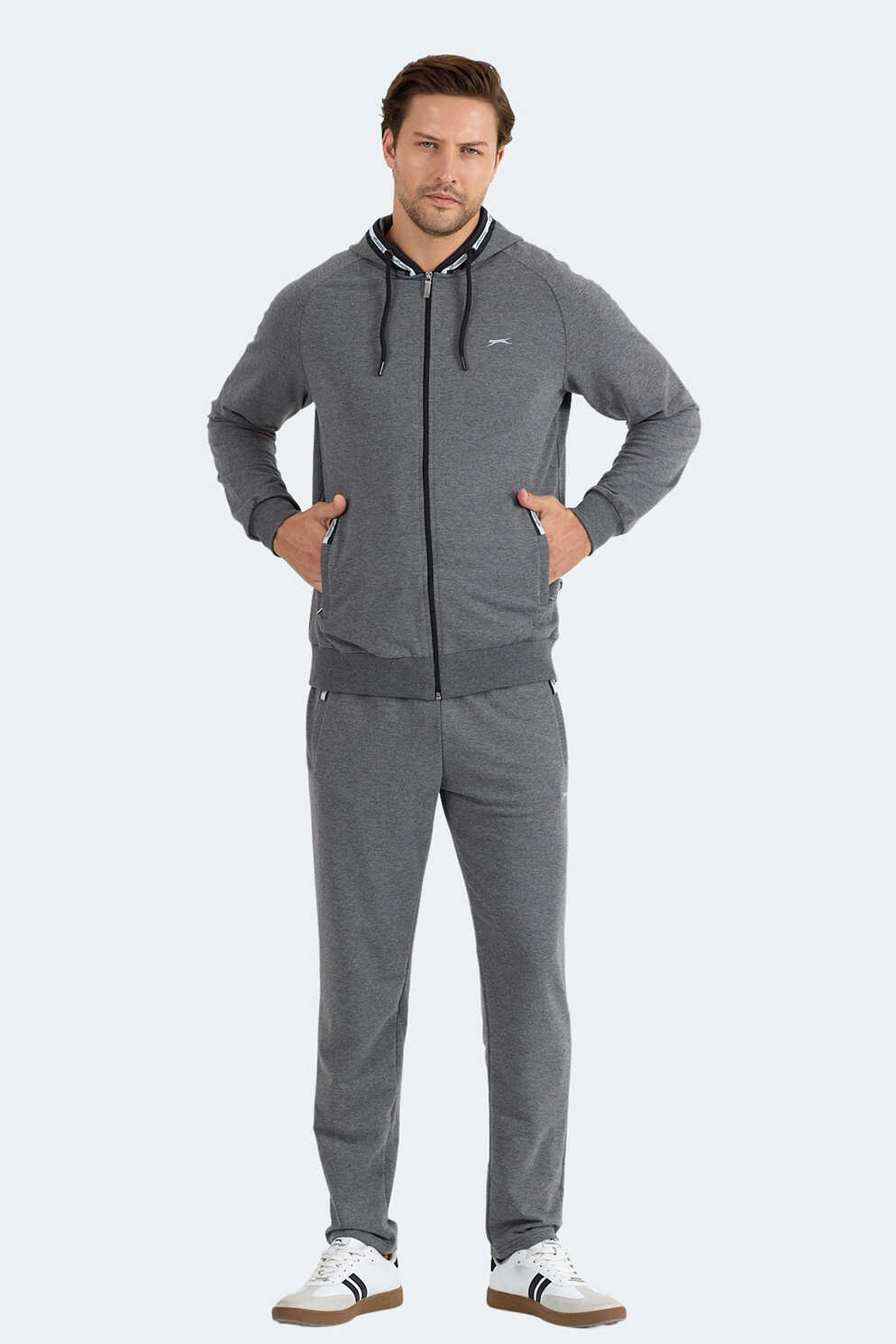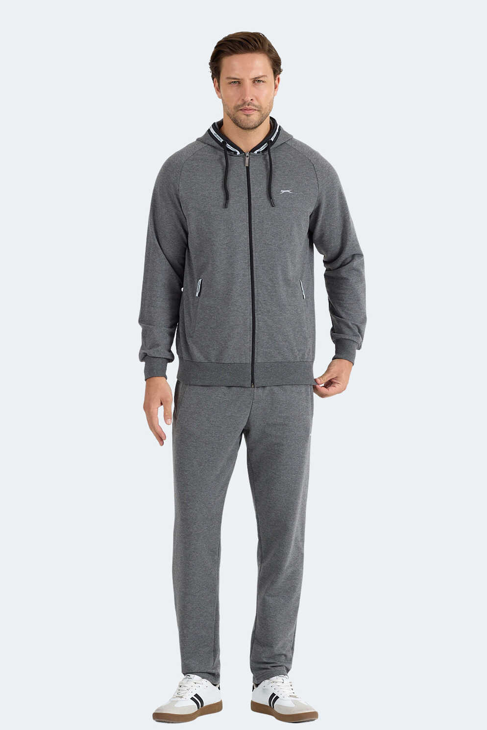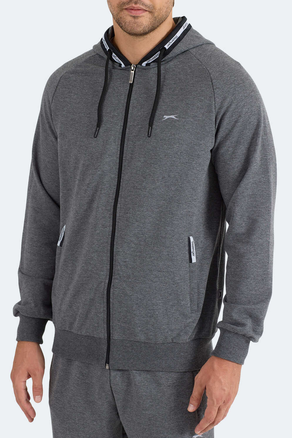 Slazenger FENDER Erkek Kapüşonlu Fermuarlı Antrasit Eşofman Takımı