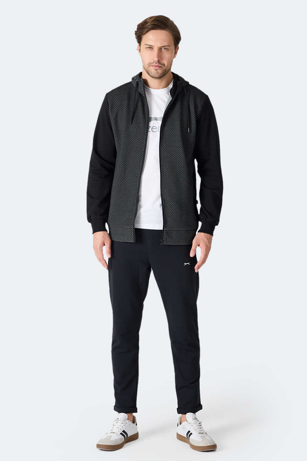 Slazenger FLAME Erkek Kapüşonlu Cepli Siyah Sweatshırt