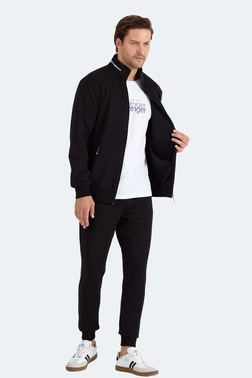 Slazenger FROZEN Erkek Dik Yaka Fermuarlı Siyah Eşofman Takımı