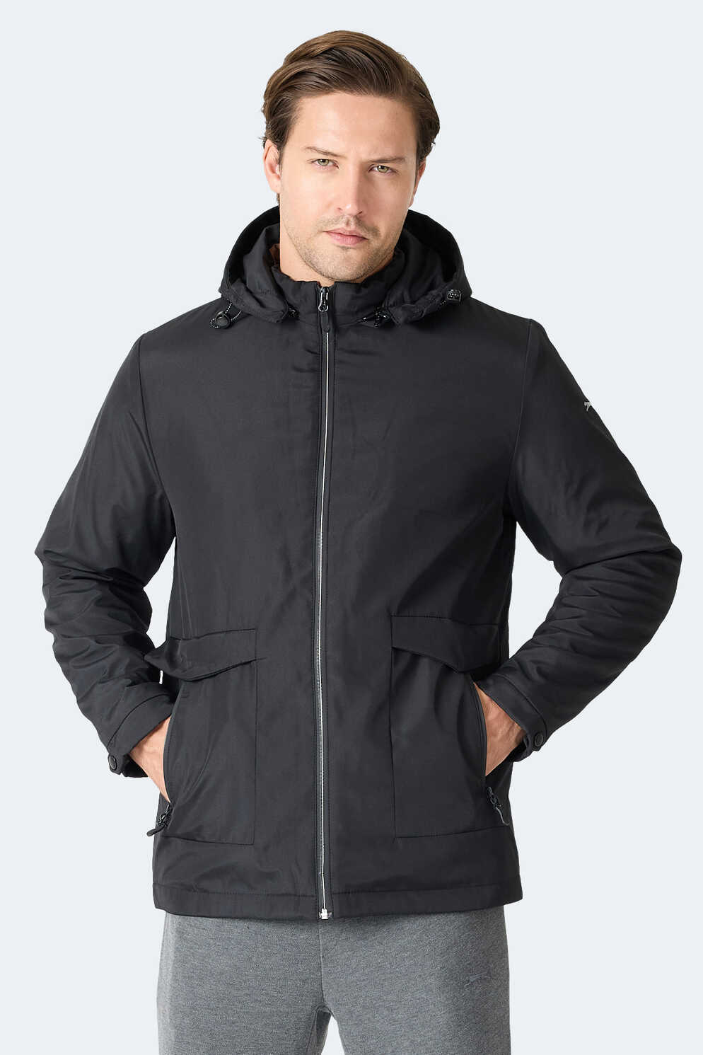 Slazenger GRAVEL Erkek Kapüşonlu Siyah Mont & Kaban