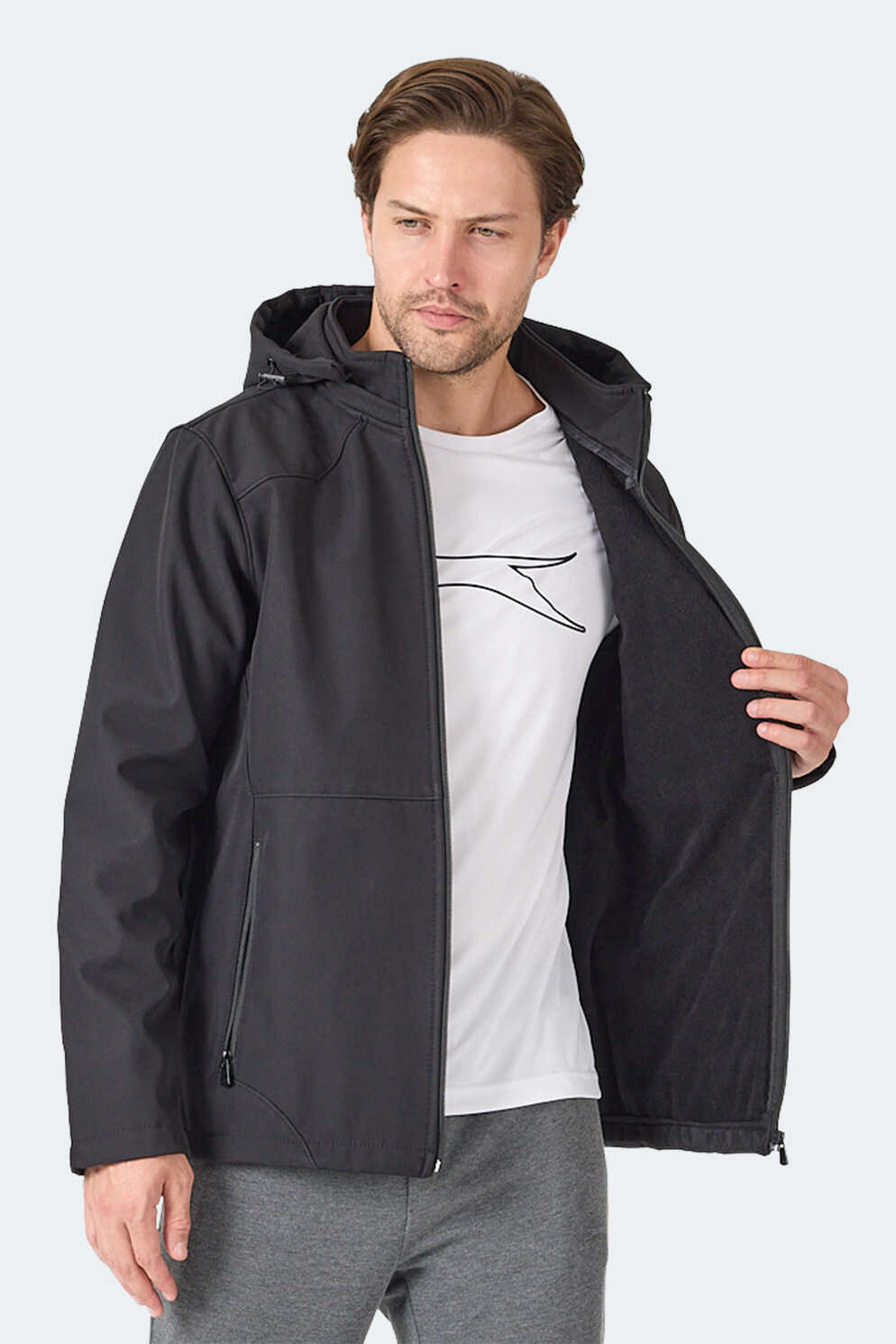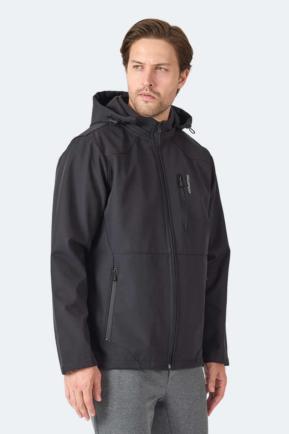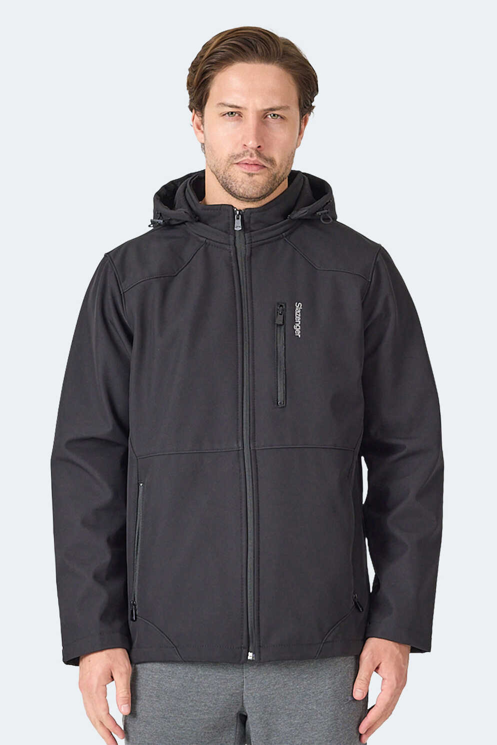 Slazenger HARMONIC Erkek Kapüşonlu Fermuarlı Siyah Mont & Kaban