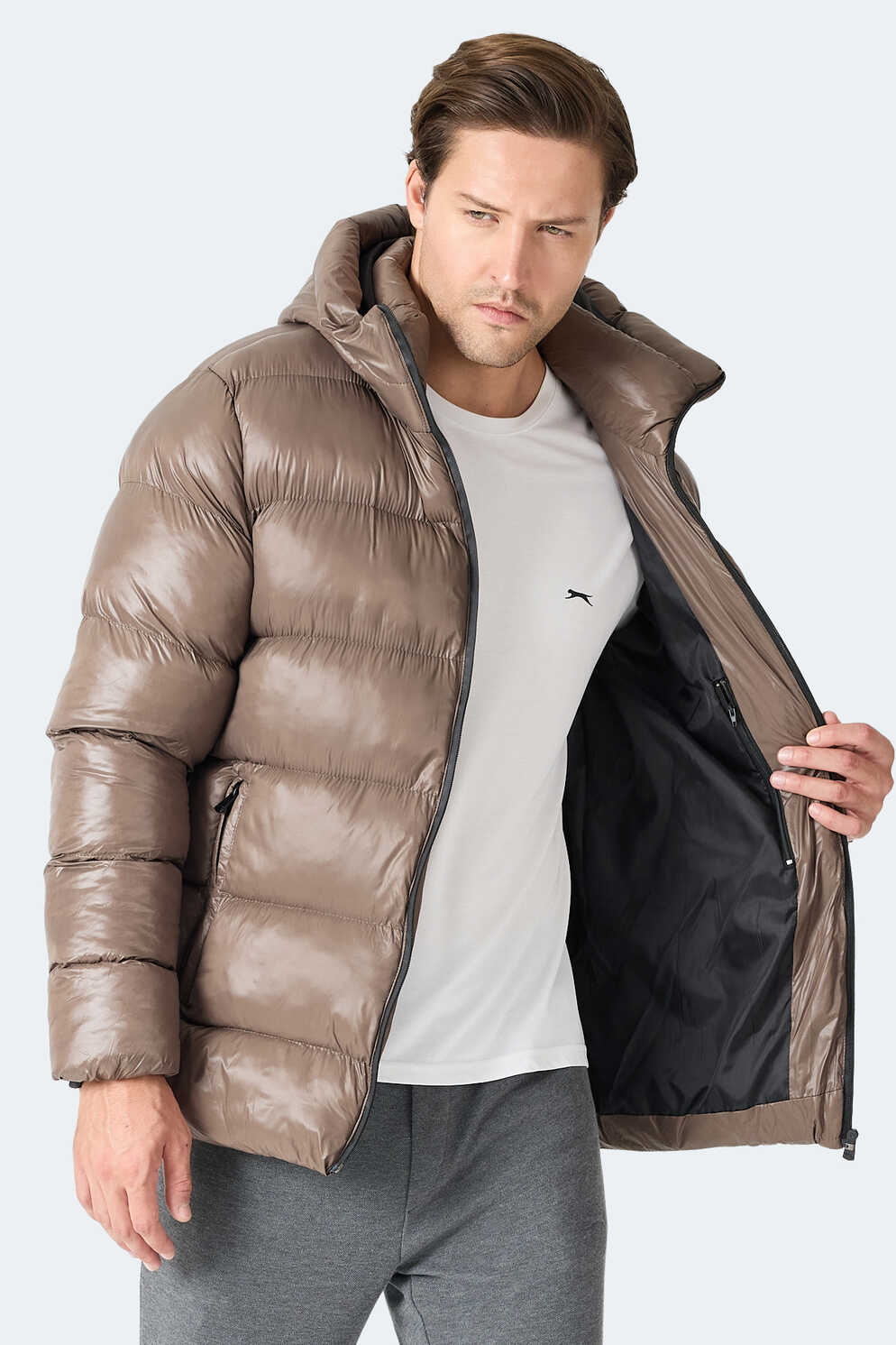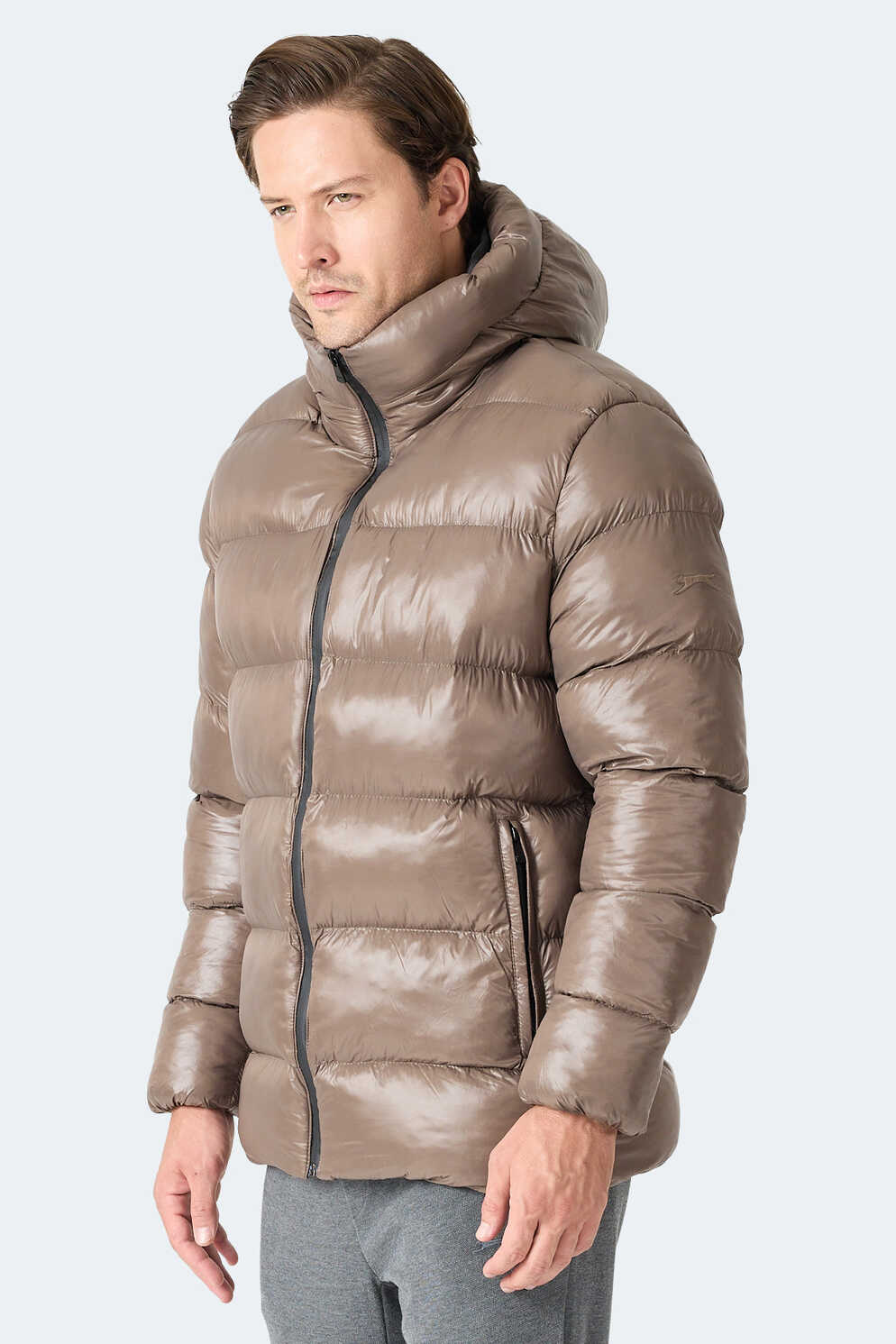 Slazenger HOOT Erkek Kapüşonlu Şişme Kahve Mont & Kaban