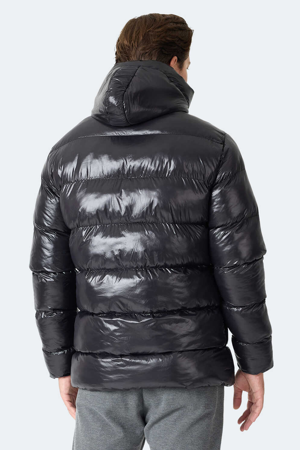 Slazenger HOOT Erkek Kapüşonlu Şişme Siyah Mont & Kaban