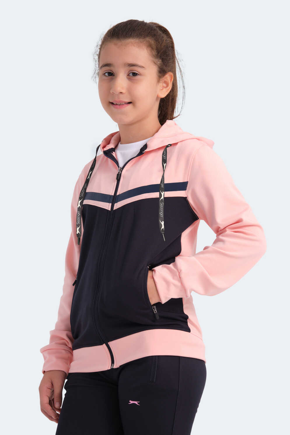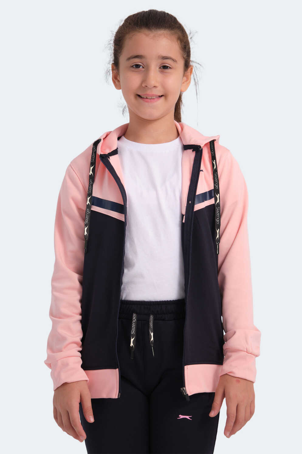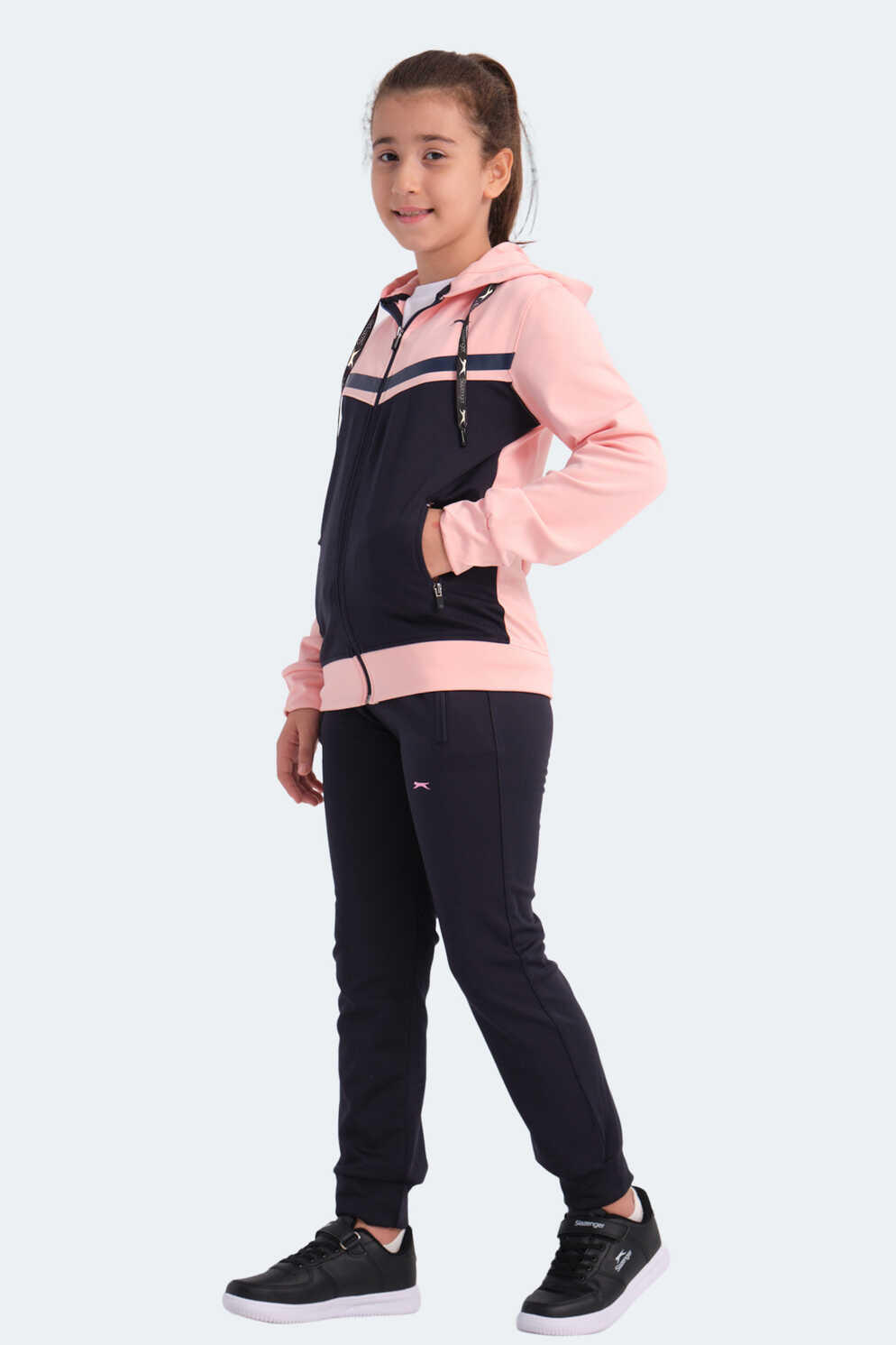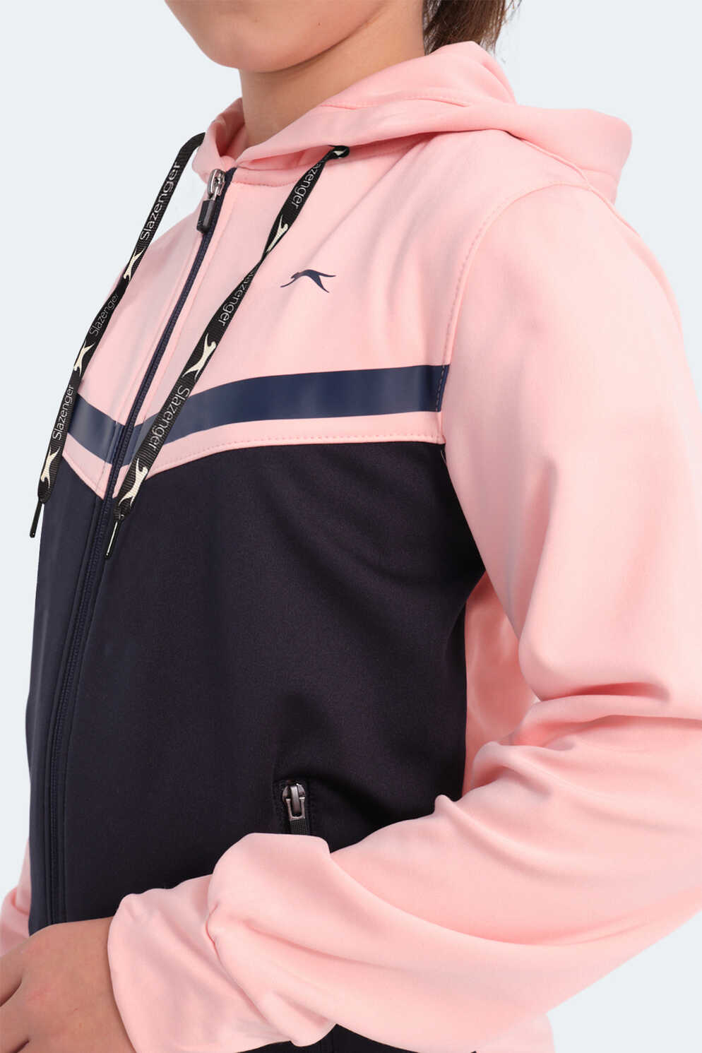 Slazenger NOON Kız Çocuk Fermuarlı Kapüşonlu Cepli Lacivert / Pembe Eşofman Takımı