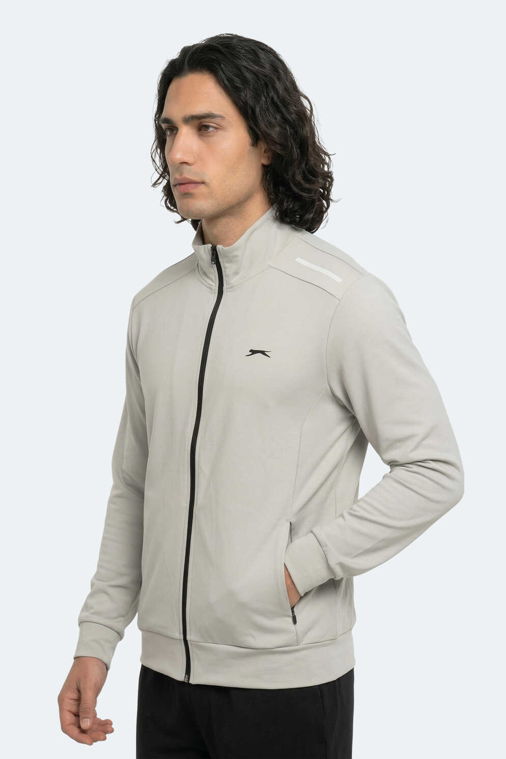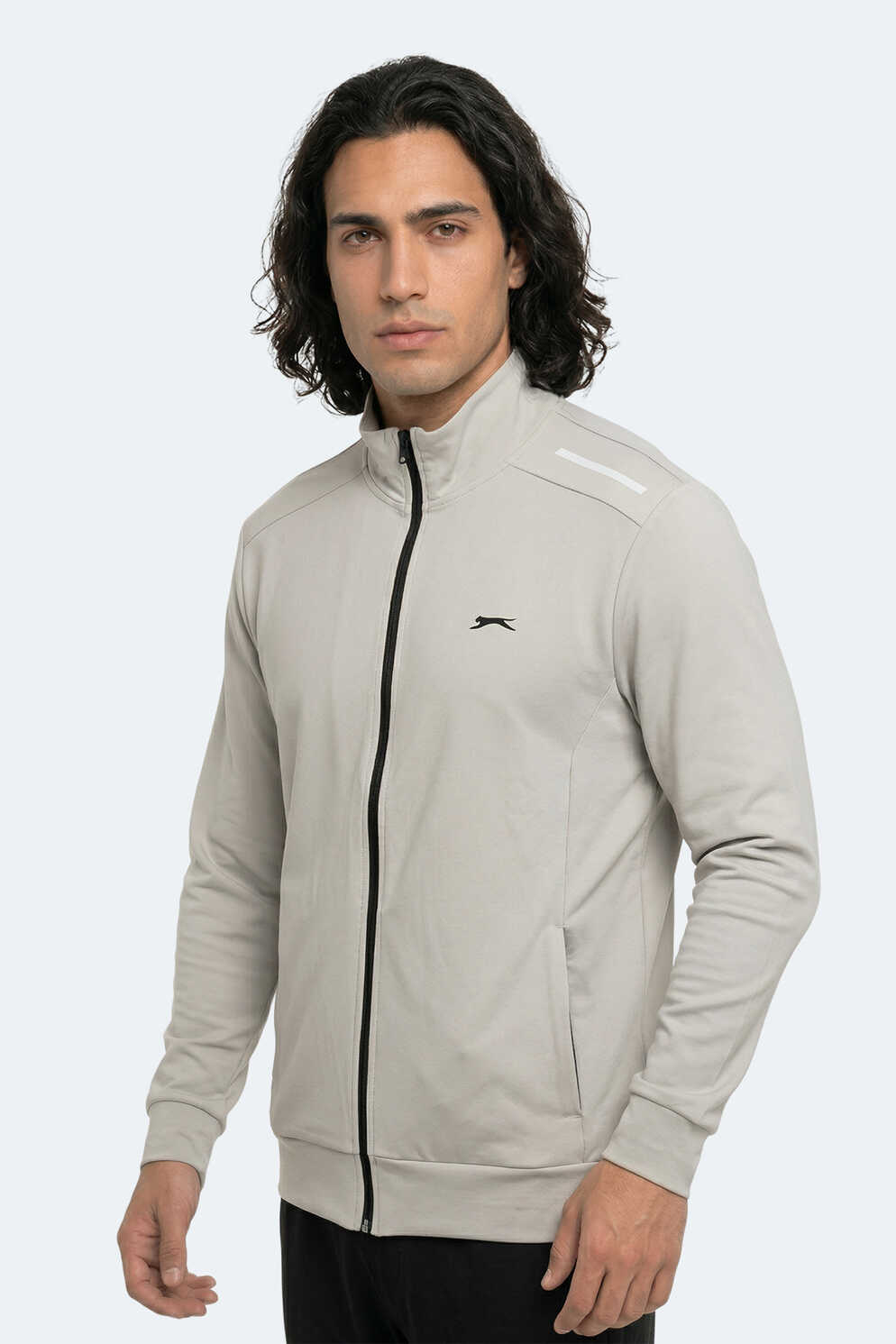 Slazenger REVOLVER Erkek Fermuarlı Dik Yaka Cepli Gri Sweatshırt