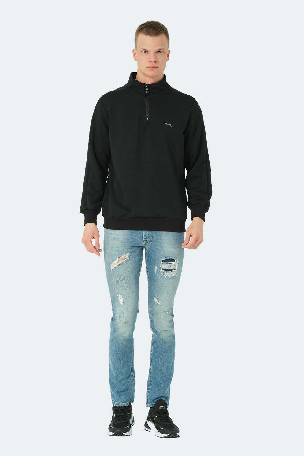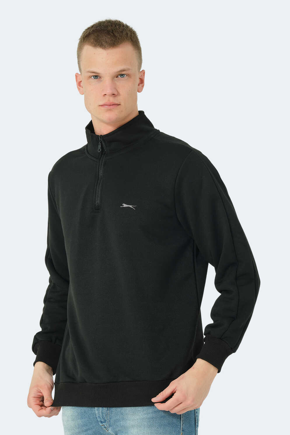 Slazenger SAMMY Erkek Dik Yaka Fermuarlı Siyah Sweatshırt